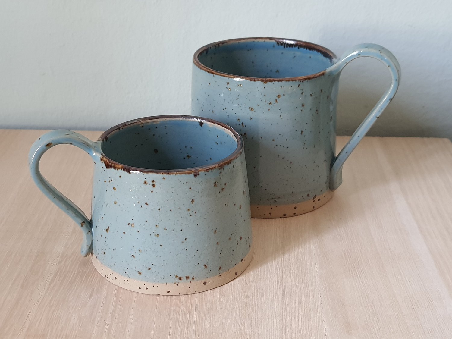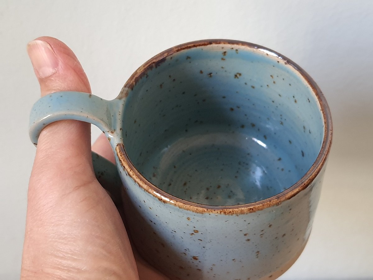 Tazza in grès puntinato e finitura lucida con manico. Linea Les Coquettes.