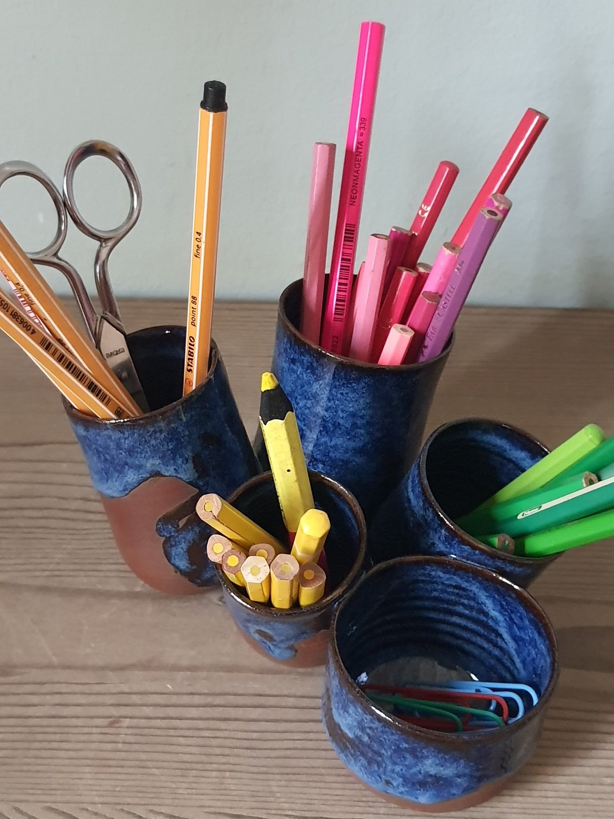 Composizione multipla per scrivanie o desk. Adatta a contenere penne, matite, gomme, forbici, graffette, caramelle... Comodissima perché tiene tutto insieme!