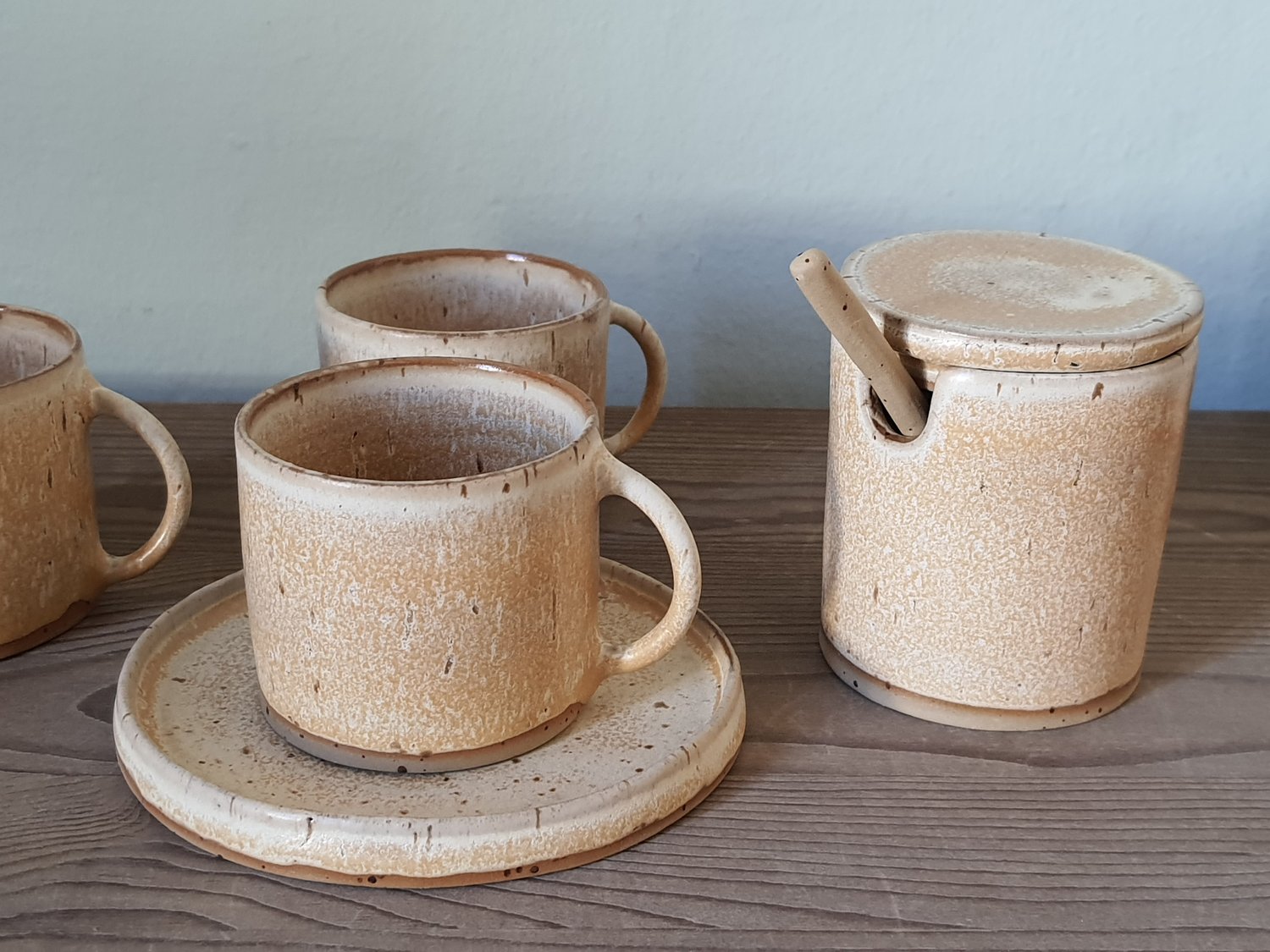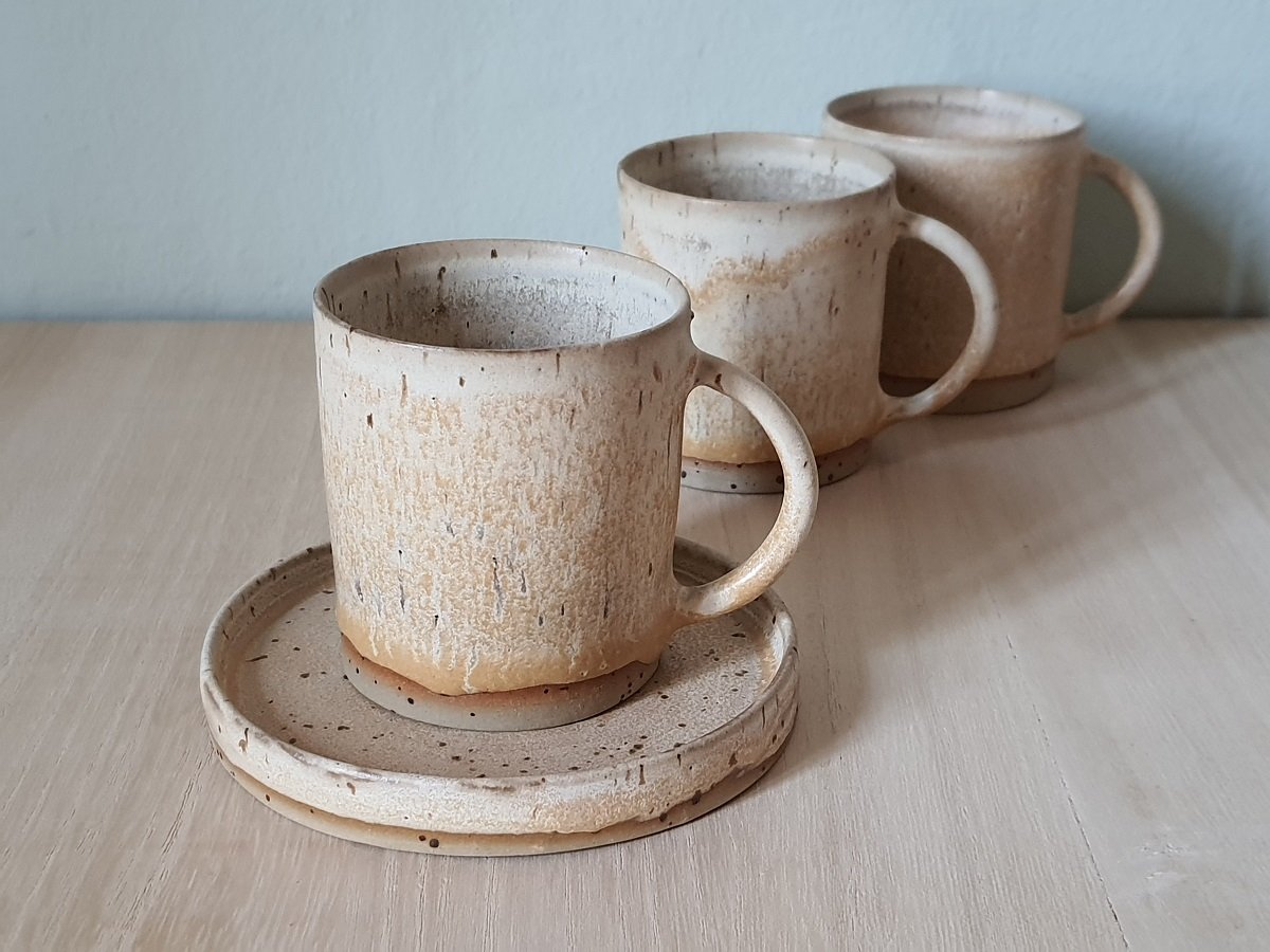 Tazzina color crema in grès puntinato con finitura opaca. Linea Shibui.